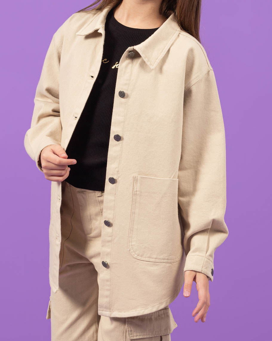 Рубашка DMB для девочки оптом. Это универсальная одежда на любой сезон. Удлиненный крой, отложенный воротник и карманы придают ей стиль и особый шарм. Рубашка для девочки выполнена из 100% хлопка (габардин).