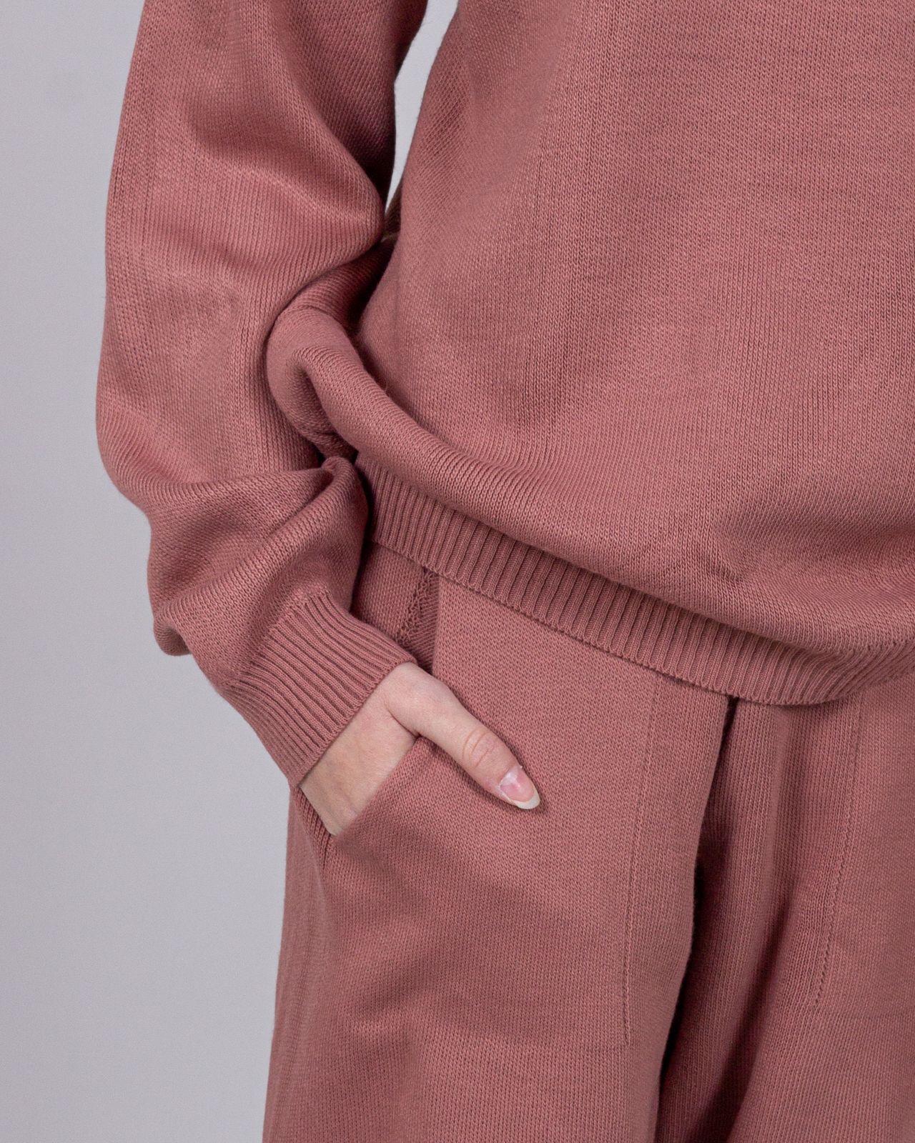 Трикотажный костюм для повседневной жизни выполнен из качественной турецкой пряжи. Костюм смотрится элегантно и стильно, отлично подходит для дома и отдыха.