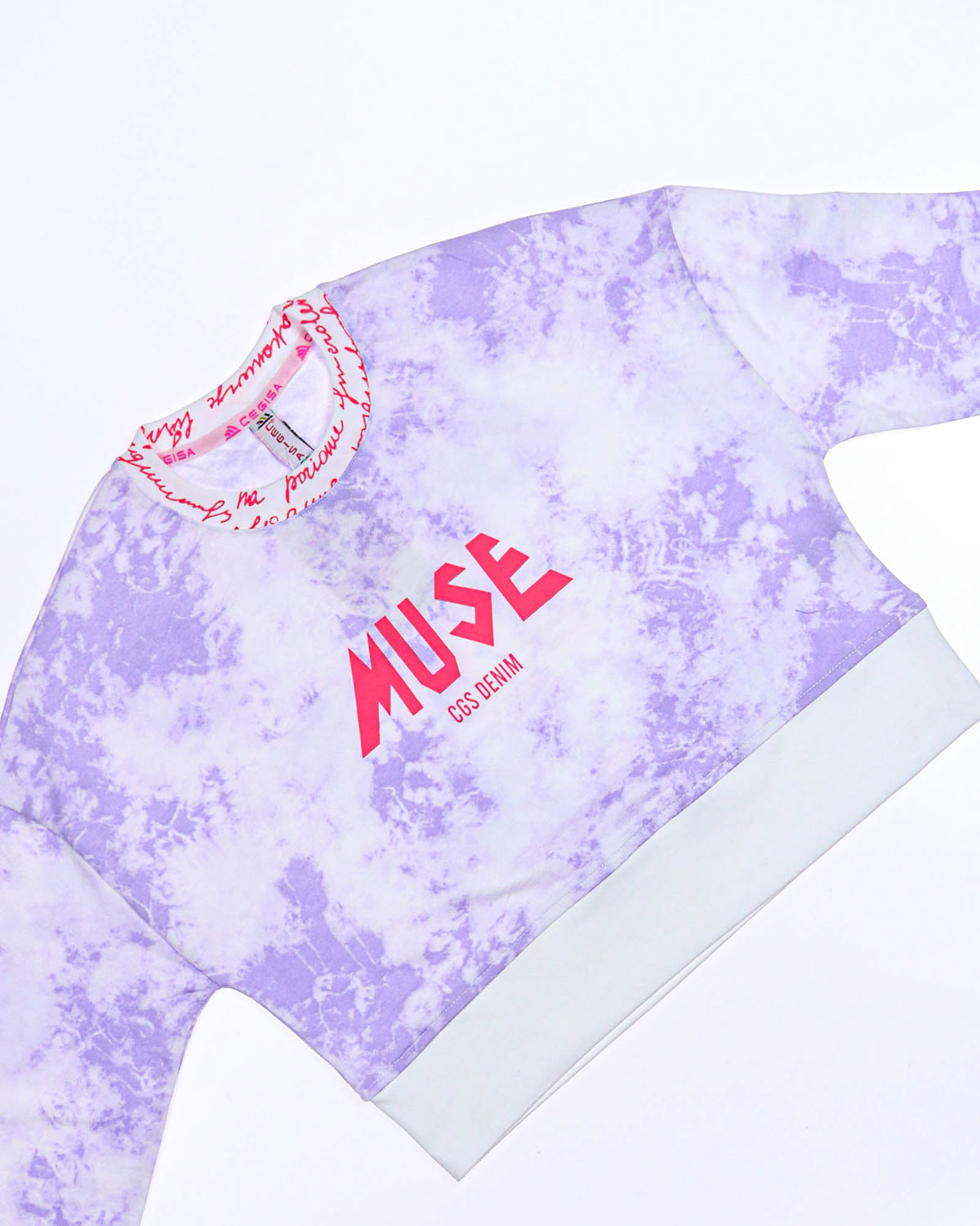 Трикотажный костюм из хлопка, выполнен из футера и украшен принтом тай дай.