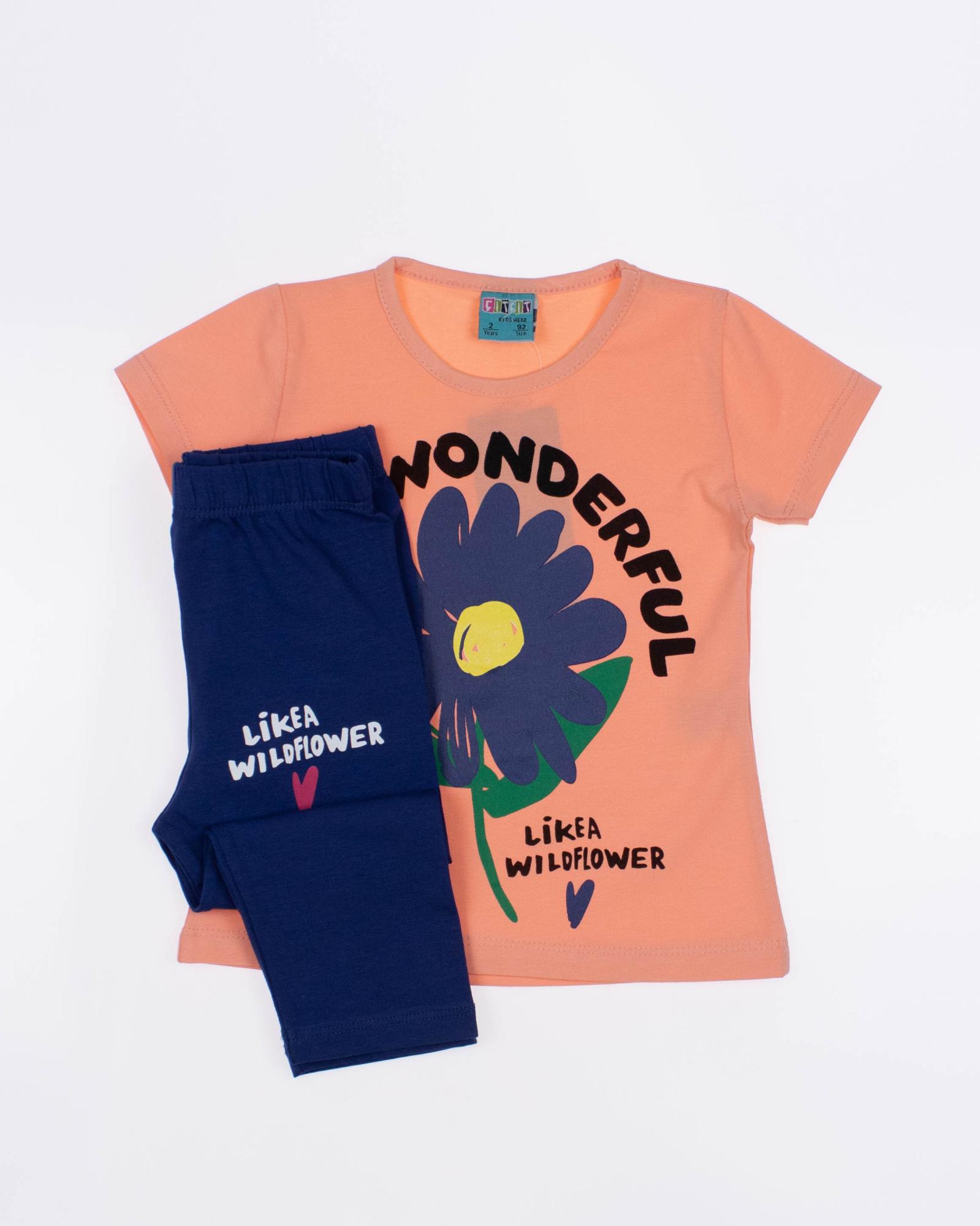 Детский костюм торговой марки CITCIT оптом - это отличный выбор для маленькой модницы! Произведенный в Турции из высококачественного трикотажа кулирка, этот костюм обеспечивает комфорт и удобство на целый день. Свободный и удлиненный  крой  делают эту футболку стильной и современной.  А принт на передней части футболки придает ей яркость и оригинальность. Этот костюм подойдет как для повседневной носки, так и для активного отдыха на свежем воздухе. А оптовая цена делает его отличным выбором для магазинов и интернет-магазинов детской одежды. Порадуйте своих малышей качественной и стильной одеждой от CITCIT!
