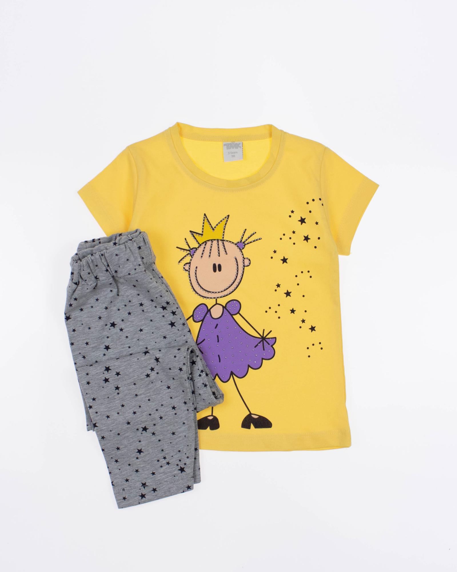 Практичный костюм TMK для девочки оптом состоит из футболки и бридж. Горловина футболки обработана эластичной бейкой. Лосины в поясе на резинке. Костюм изготовлен из трикотажа кулирка - нежного и мягкого, гипоаллергенного и легкого в уходе. Модель прекрасно подойдет для повседневной носки на улице или дома, для детского сада, а так же для активного отдыха и занятий спортом.