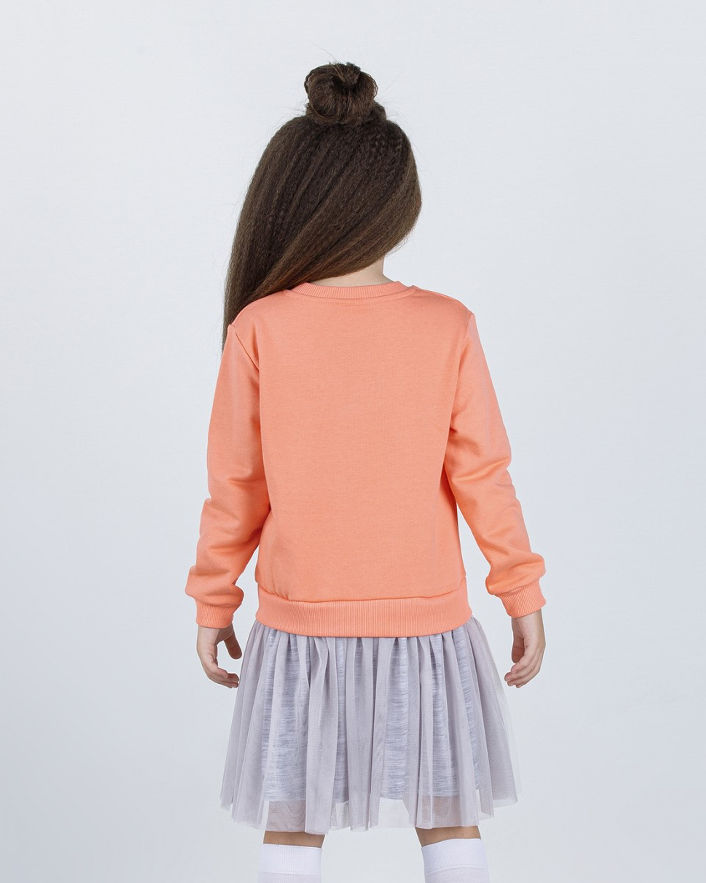 Платье Dmb для девочки оптом, выполнено из трикотажа футер (петля) с длинными рукавами и округлой горловиной, юбка  трехслойная сшита из сетки. Платье украшено оригинальным принтом.