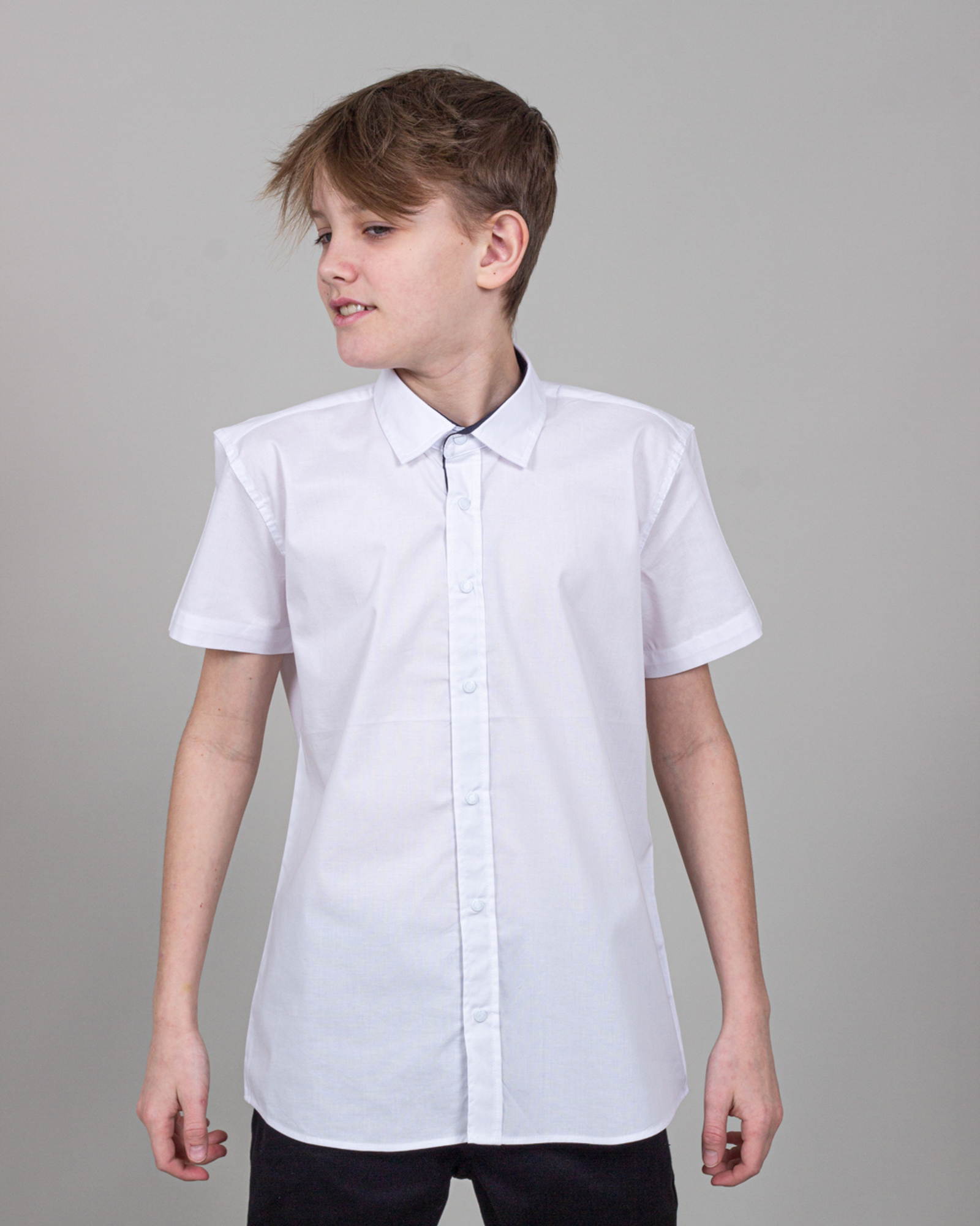 Рубашка с короткими рукавами Cegisa для мальчика оптом. Модель приталенного кроя с классическим отложным воротничком, застегивается на кнопки.