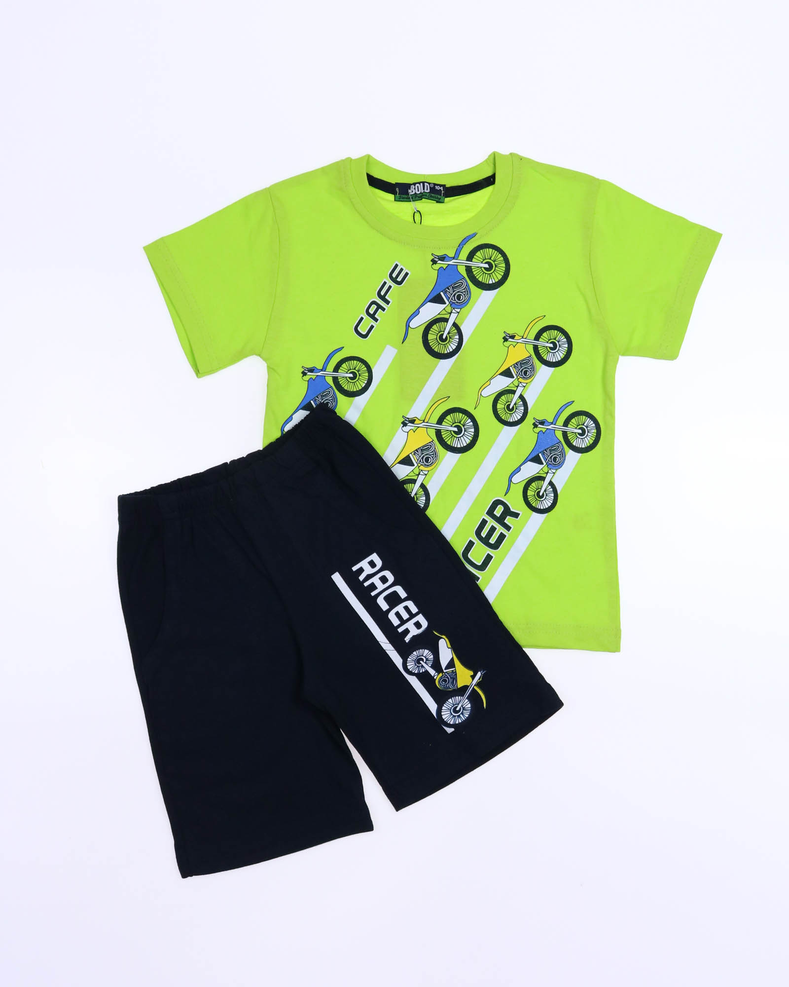 Трикожный костюм BOLD оптом из 100% хлопка с оригинальным, ярким принтом. Шорты трикотажные с карманами.