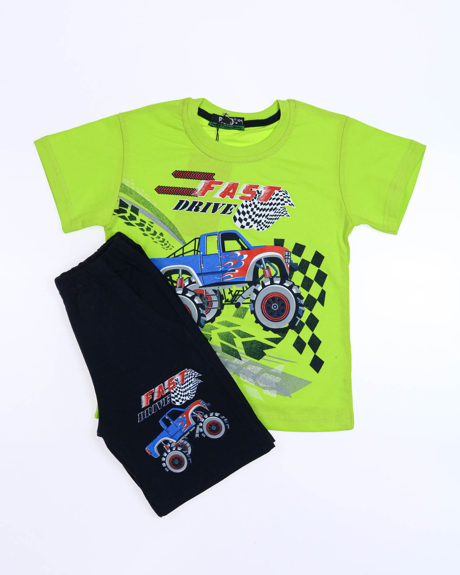 Трикожный костюм BOLD оптом из 100% хлопка с оригинальным, ярким принтом. Шорты трикотажные с карманами.