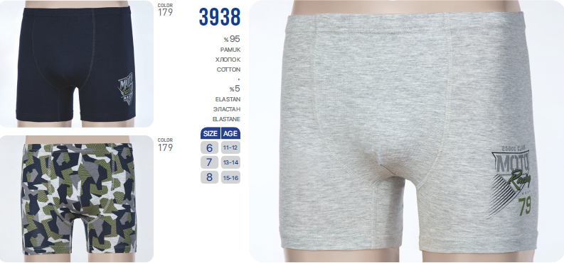 Трусы-боксеры для мальчика выполнены из качественного хлопка 95% с добавлением эластана 5%. В составе только натуральный хлопок с добавлением эластана для придания прочности и эластичности. Трусы-боксеры спереди имеют гладкие швы флэтлок, которые очень деликатные, аккуратные и не натирают кожу. Эластичная резинка, хорошо тянется и не деформируется. Ткань не скатывается, не выцветает и сохраняет форму после многочисленных стирок.
