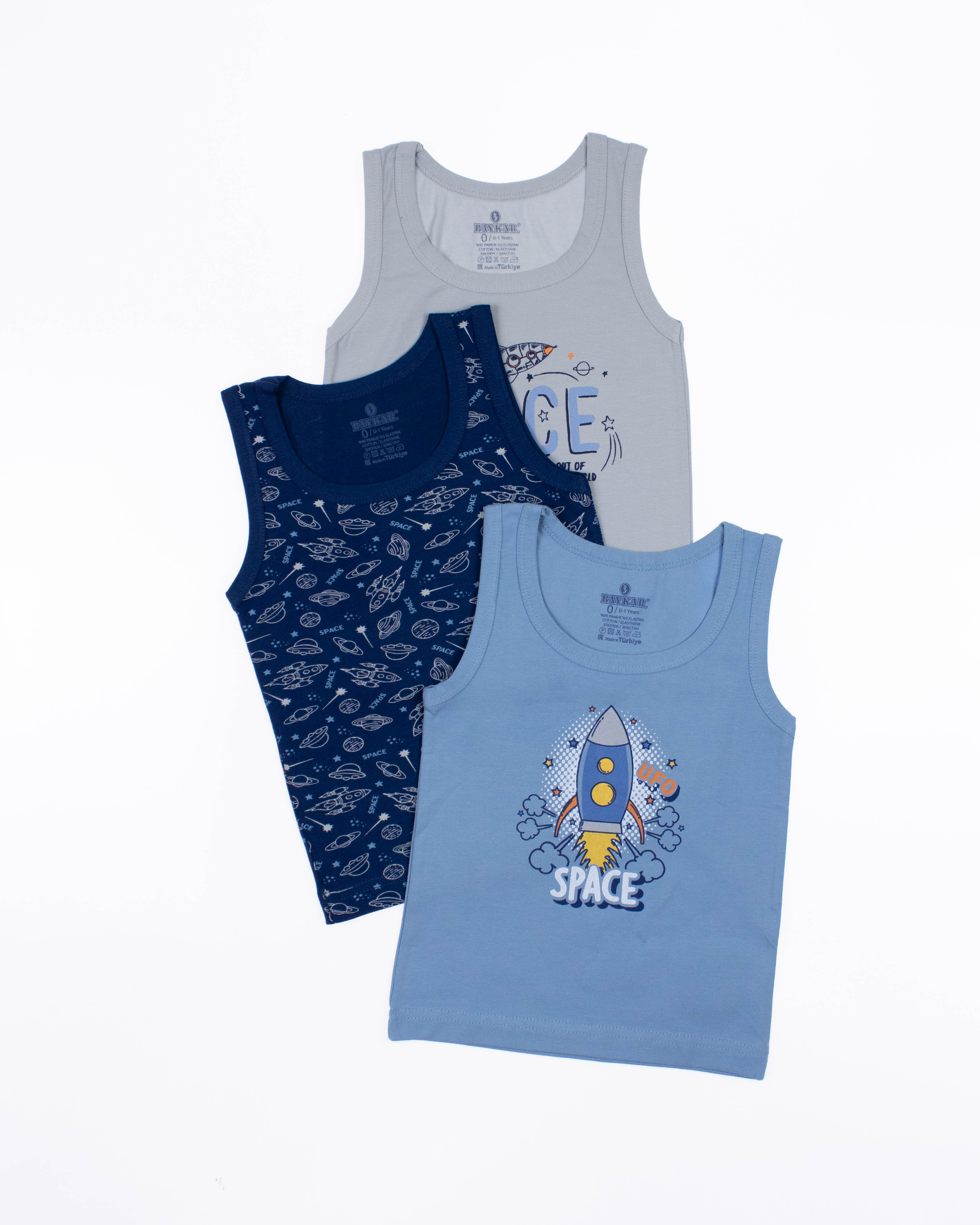Майка для мальчика  от турецкого бренда BAYKAR - это гарантия комфорта, практичности и стильного дизайна. Изделия изготовлены из качественного хлопкового трикотажного полотна с добавлением прочной эластановой нити, не требуют особого ухода, не линяют и не растягиваются после стирки. Особенности моделей - классический крой, популярные расцветки и принты - делают майки универсальными в носке: их можно использовать как нательное белье, домашнюю одежду или как часть повседневного летнего гардероба.