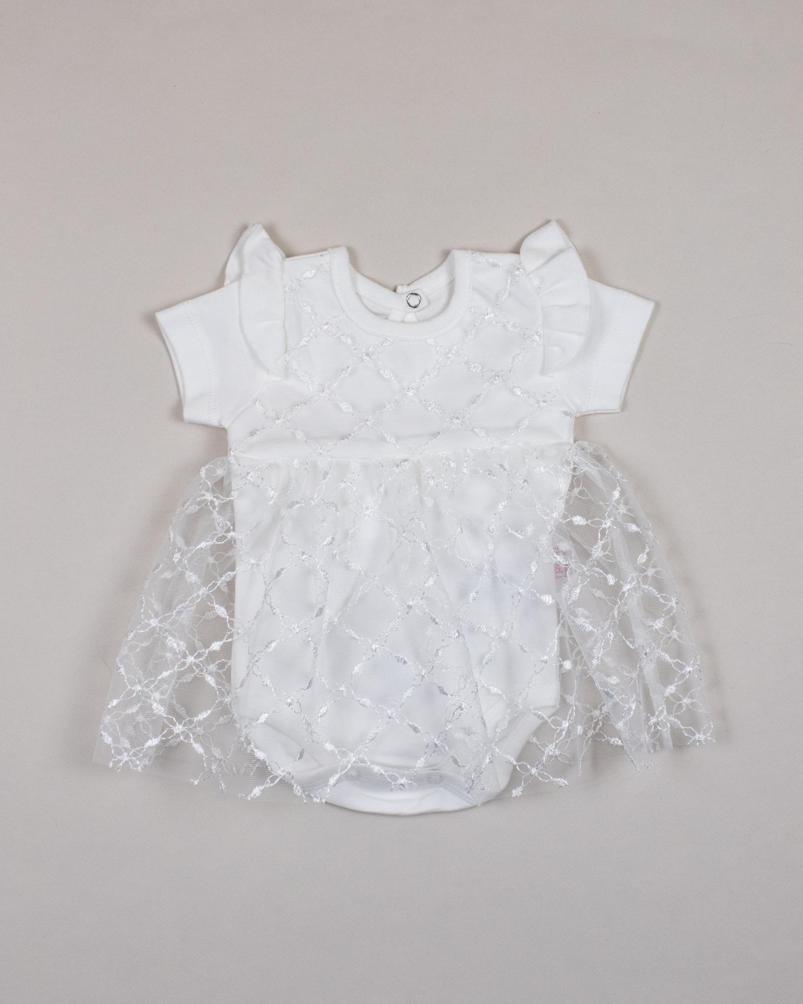Платье- боди PUAN с коротким рукавом для малышки очень комфортно в использовании, не стесняет движений. Изготовлено из 100% хлопка. Застежка на спинке и снизу позволит в считанные секунды переодеть ребенка. Юбка выполнена из мягкого кружева.